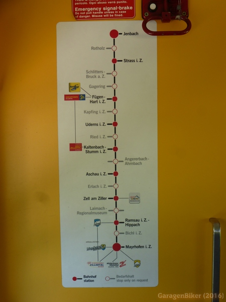 # Zillertal Mit der Zillertaler Bahn nach Mayrhofen. Mayrhofen liegt im hinteren Zillertal östlich des Ziller bzw. des Zemmbachs, am Ende des Tales, wo sich mehrere Seitentäler bzw. Orte vereinen: Zemmtal, Stilluptal, Zillergrund und das Tuxertal. Das Gemeindegebiet umfasst unter anderem den Ochsner (3107 m), Zsigmondyspitze (3089 m), Floitenturm (2805 m) und an der Grenze zu Italien den Großen Löffler (3379 m), alle in den Zillertaler Alpen gelegen.