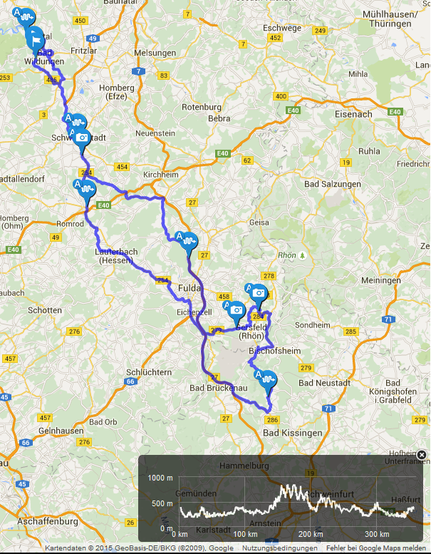 Die erste größere Tour mit meiner Fireblade. Drei Tage Richtung Rhön und quer durchs Sauerland - Bad Wildungen - Wasserkuppe, in der Rhön und zurück nach Essen. Mehr info über diese Tour findete Ihr unter www.garagenbiker.de.